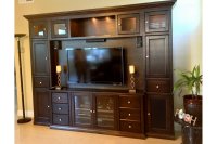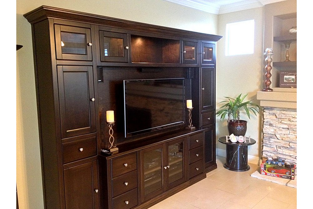 A matching entertainment center and fireplace make a great pairing.